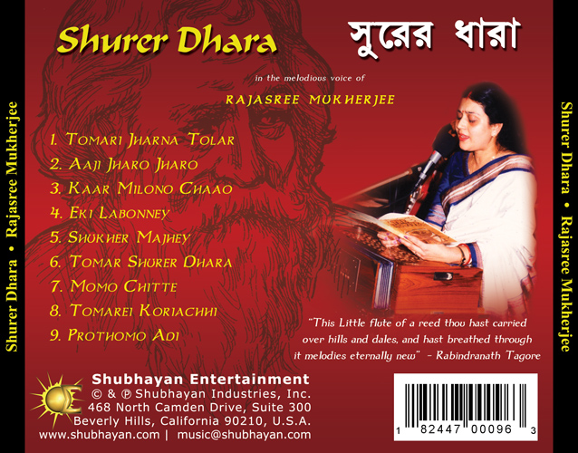 The singer, Rajasree Mukherjee, a leading exponent of Rabindra Sangeet has lent her delightful and romantic voice to make this CD an unforgettable experience.